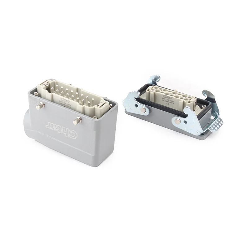 CHTAR의 고급 16A HE-016-F/M 플러그인 고강도 커넥터는 M/F 16핀 삽입 고강도 커넥터입니다. 남성과 여성 부분이 있습니다. H16B 쉘 헤비듀티 커넥터와 호환됩니다. 일반적으로 수형 구성 요소는 수형 하우징에 조립되거나 고객 요구 사항에 따라 역방향 설치를 위해 암형 구성 요소에 조립될 수 있습니다. 견고한 PC 케이스 소재와 은도금 황동 핀은 M/F 16핀 플러그인 헤비듀티 커넥터의 전도성과 작동상의 이점을 보장합니다.