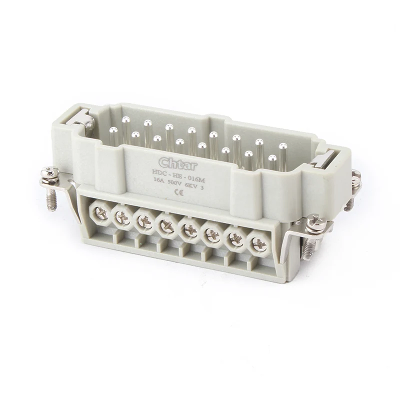 M/F 16핀 인서트 헤비듀티 커넥터는 알루미늄 하우징 헤비듀티 커넥터 HDC-HE-016에 장착되는 인서트 부품입니다. 인서트 헤비 듀티 커넥터는 PC 및 황동 핀으로 구성됩니다. CHTAR 황동 핀은 은도금되어 있습니다. 함께 연결하는 것은 남성과 여성의 부분입니다. 또한 IP65 보호를 받으려면 하우징 부분에 조립해야 합니다.