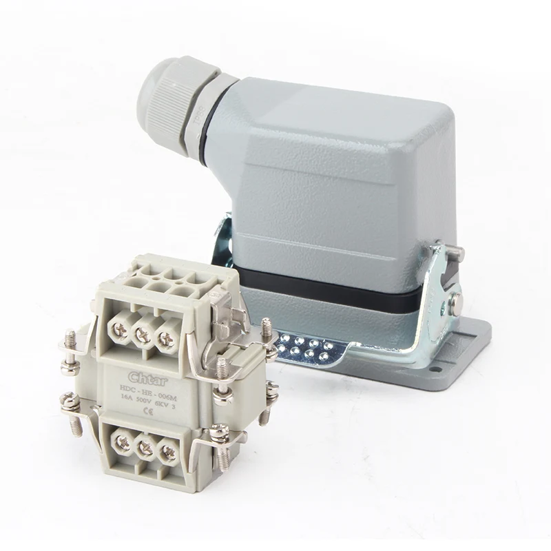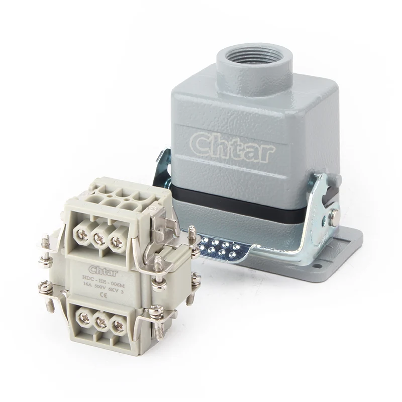 이 CHTAR 고품질 M/F 6핀 인서트 헤비듀티 커넥터는 16A H6B-TG-RO 하우징 헤비듀티 커넥터 하우징과 일치합니다. 알루미늄 하우징에 조립할 수 있도록 견고한 PC 재질과 4+1 핀으로 만들어졌습니다. 특정 사양에 관심이 있으시거나 궁금하신 점이 있으시면 언제든지 연락주세요!