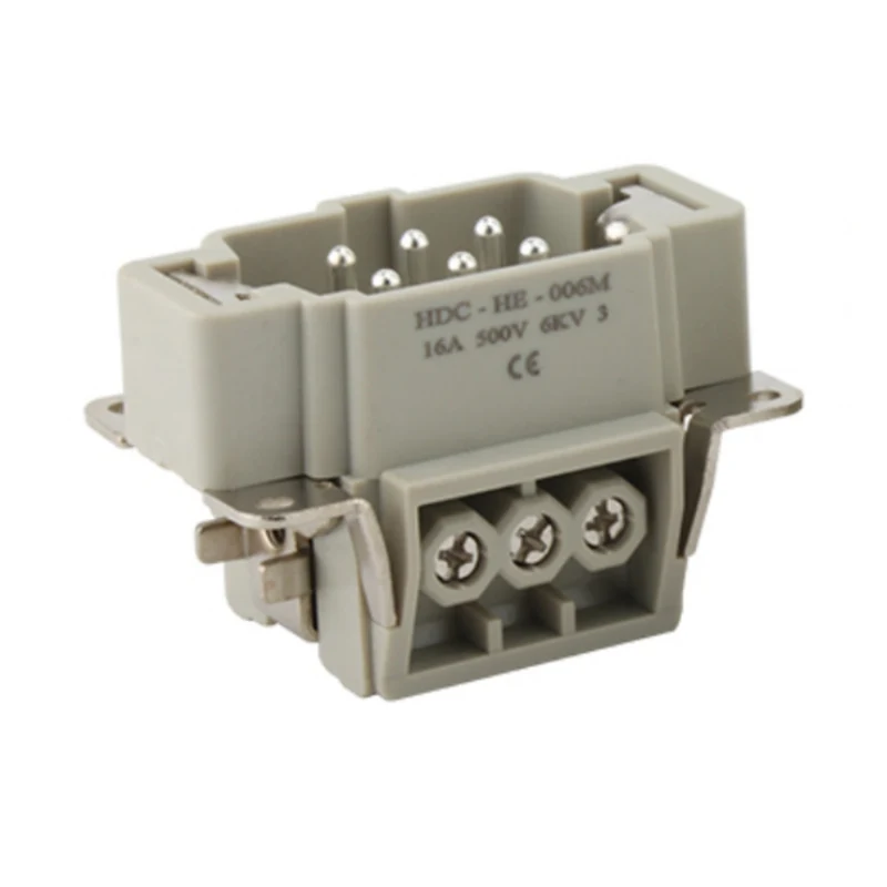 M/F 6핀 인서트 헤비듀티 커넥터는 16A 전류에서 작동합니다. 전선과 접촉하는 핀은 16핀입니다. 다양한 작업 조건을 제공하며 자동 산업 및 기계 배선 연결 종류에 널리 사용됩니다.